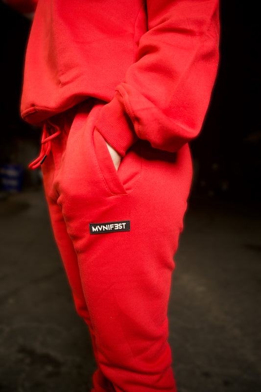 MVNIFEST Brand Semi Stacked Jogger Rubber Logo “Red/Crimson”